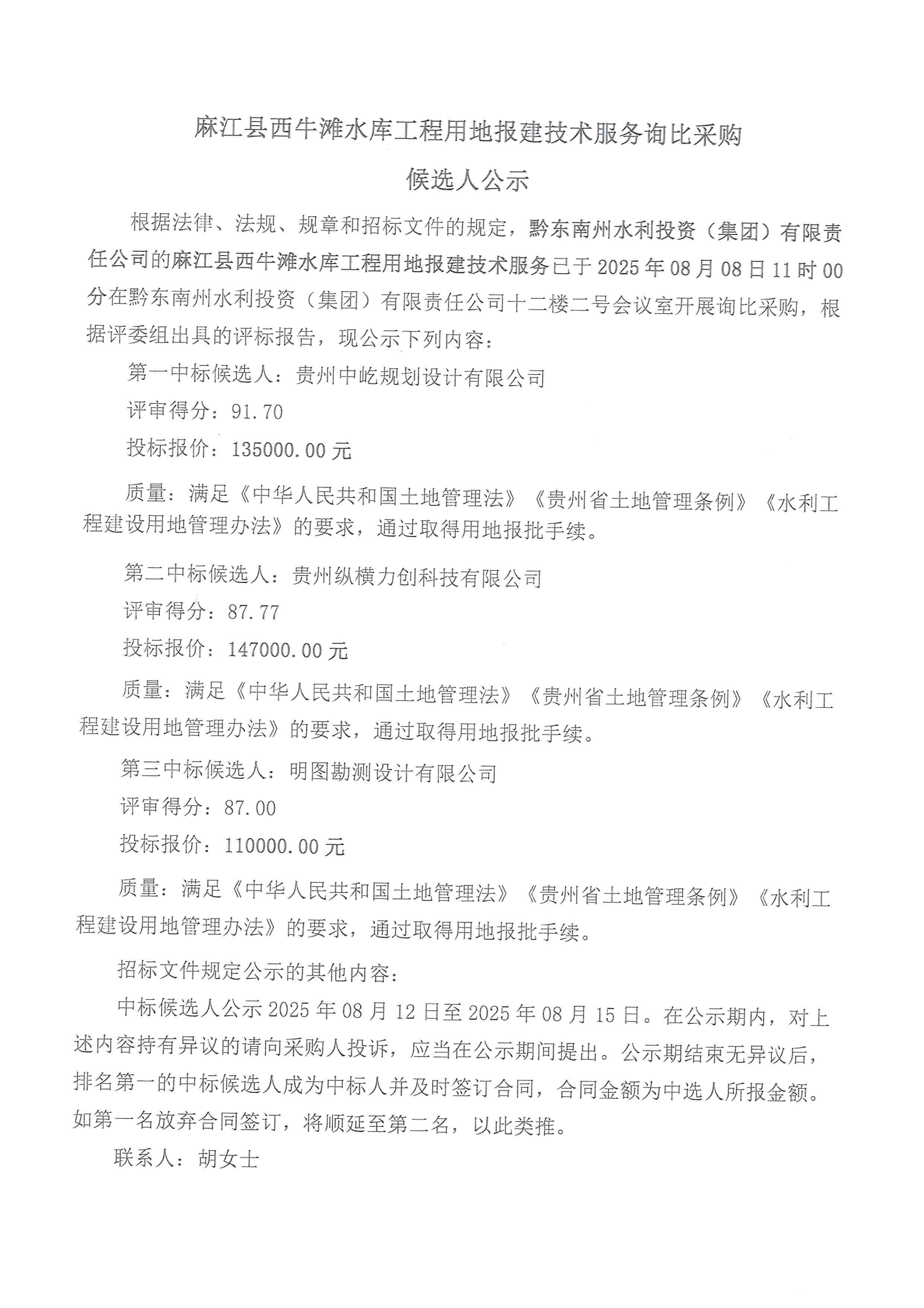 麻江县西牛滩、从江县往洞、榕江县溪口3座水库工程用地报建技术服务项目采购