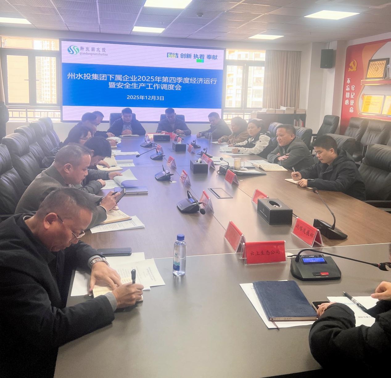 2025年12月3日下午,州水投集团组织召开2025年第四季度经济运行暨安全生产工作调度会。集团党委委员、工会主席刘德荣主持会议并讲话,集团相关部门负责人及各子公司主要负责人参加会议。