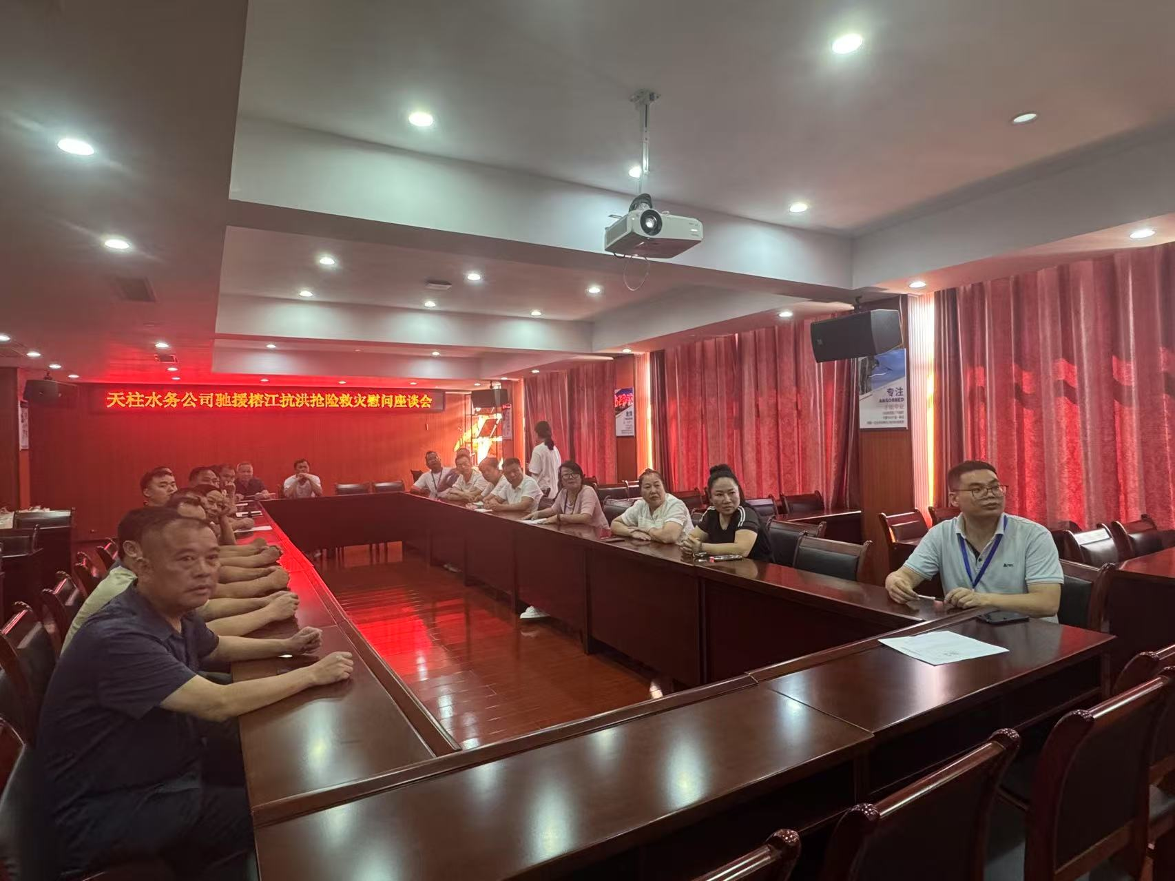 7月11日,天柱水务公司会议室里暖意与热泪交织,公司班子与援榕救灾人员共22人围坐一堂,以座谈会的形式共同回首那段浸透着汗水与团结的抗洪时光。